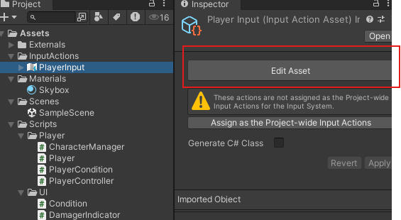 Package를 설치하면 다음과 같이 Input Actions라는 것을 생성할 수 있다. 이것을 통해 우리는 사용자 입력을 바인딩 하며 제어할 수 있는 것이다.